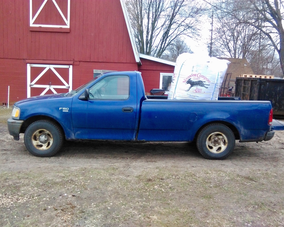 The truck really came into its own when we moved here, to our own farm. During the farmhouse renovation, it hauled loads of demolition rubble and construction debris to the landfill. Salvaged metal to the scrap yard. Stacks of two-by-fours and sheets of plywood. Replacement windows and bathroom fixtures, including a cast-iron claw-foot tub found on Craigslist. And then when the farm ramped up: Potting soil, wood chips, soil amendments, and straw bales. A brush mower, a disc harrow, and a three-point tiller. Nursery flats of transplants and crates of vegetables. And during one weird fall, caged feral cats to be neutered.