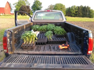 In fact, March and April have long been my favorite time of the farming season. Plenty to do, but not so much to be overwhelming. Time enough to tackle farm projects, or just to enjoy the spring’s greening. And, in the greenhouse, a chance to be somewhere warm and sunny, rich with the smell of thawed soil and full of little green plants. Work to occupy my hands but room enough in my mind to plot and ponder. And everything so manageable, all my responsibilities comprehendable with one glance—the whole shape of the season contained in spreadsheets secured to my clipboard, gathering in the greenhouse and readying to burst into the fields come May.